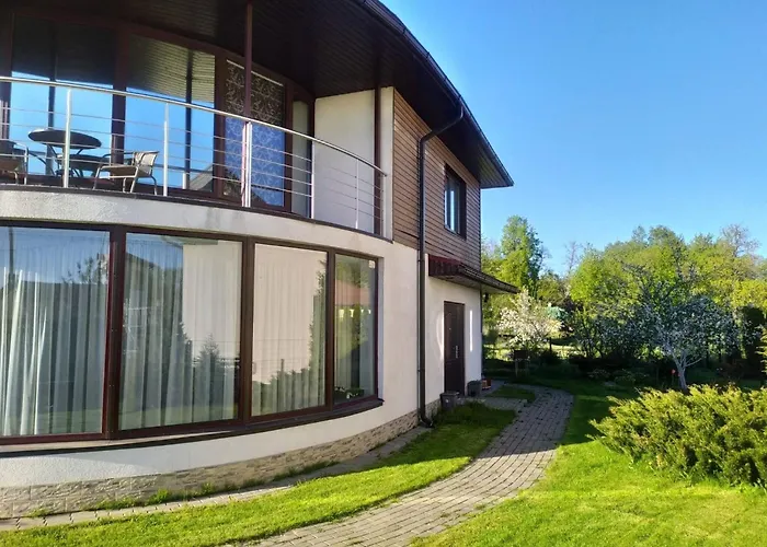 Cette propriété de Riga est située dans le quartier "Kengarags" à Riga, à environ 15 minutes en voiture du Bikernieki Memorial. Cette villa de 4 chambres se trouve à 8 km de lieux de culte tels que l'église de Jésus. Le Palais de la Culture et de la Science est accessible à environ 20 minutes en voiture de ce lieu.